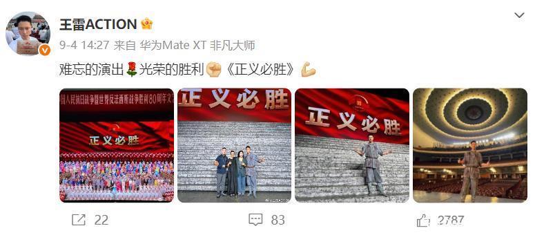 因为难掩激动和自豪,从9月3日到9月6日,王雷连发了5条动态。